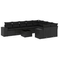 10 Piece Garden Sofa Set with Cushions Black Poly Rattan