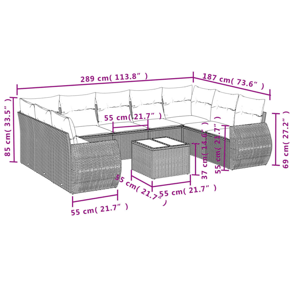 10 Piece Garden Sofa Set with Cushions Black Poly Rattan