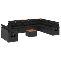 11 Piece Garden Sofa Set with Cushions Black Poly Rattan