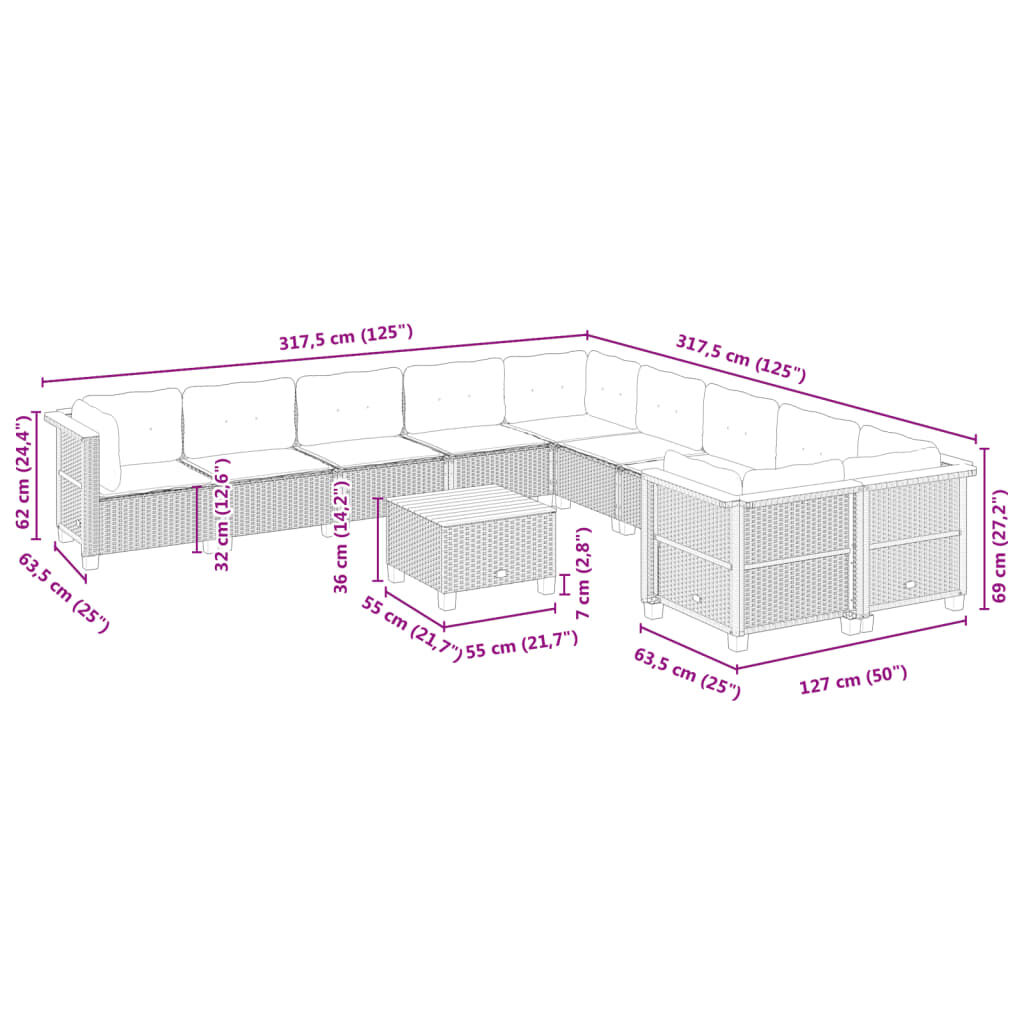 11 Piece Garden Sofa Set with Cushions Grey Poly Rattan