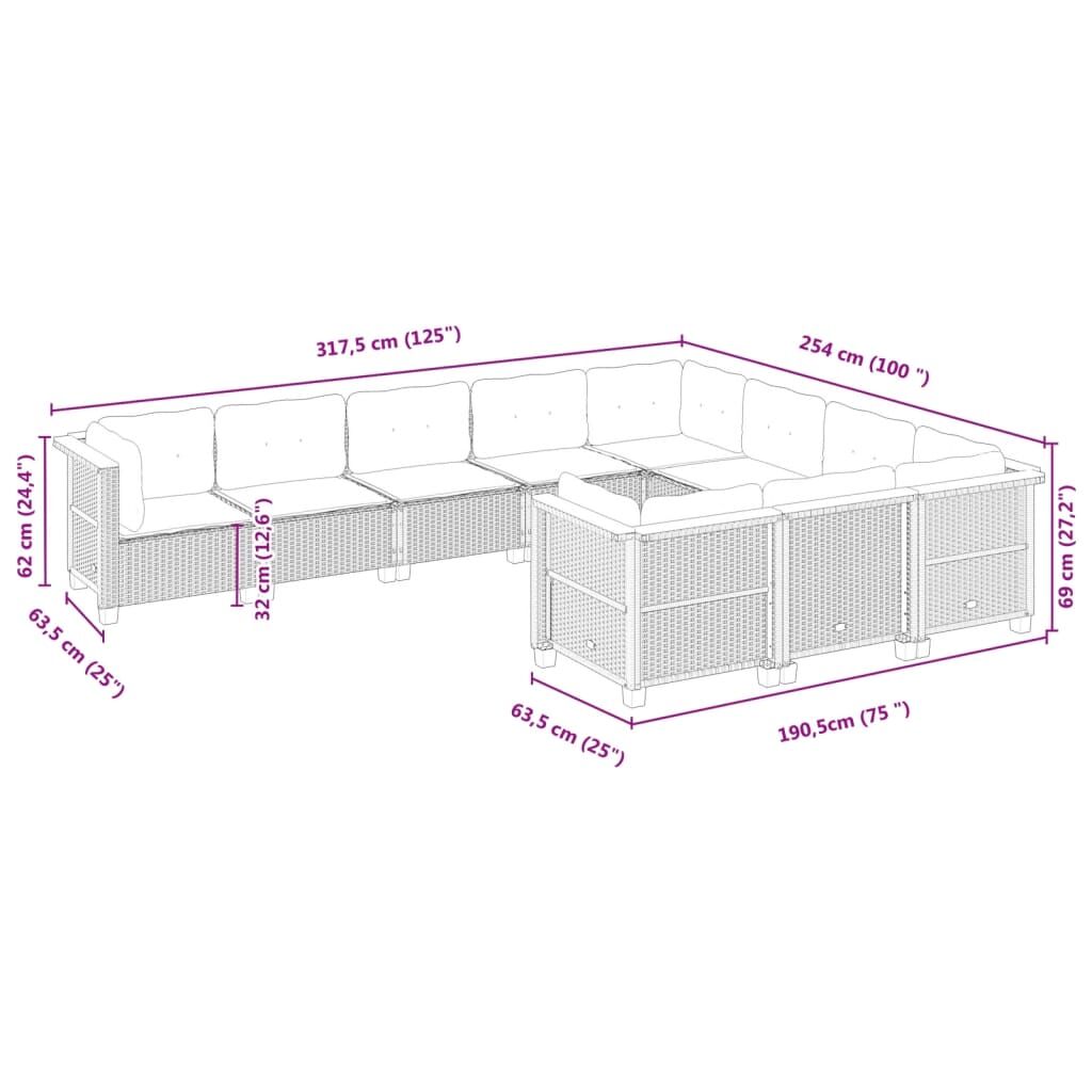 10 Piece Garden Sofa Set with Cushions Beige Poly Rattan
