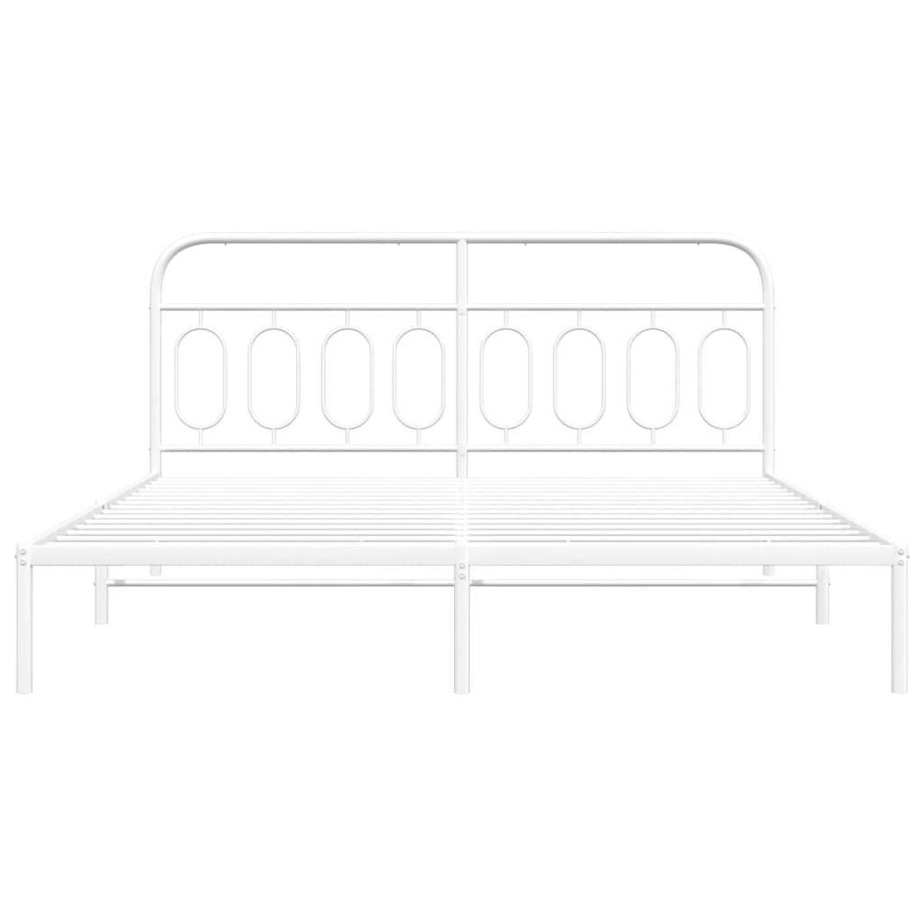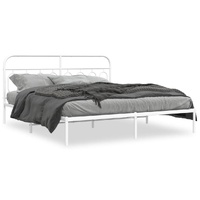Metal Bed Frame without Mattress with Headboard White 183x203 cm King