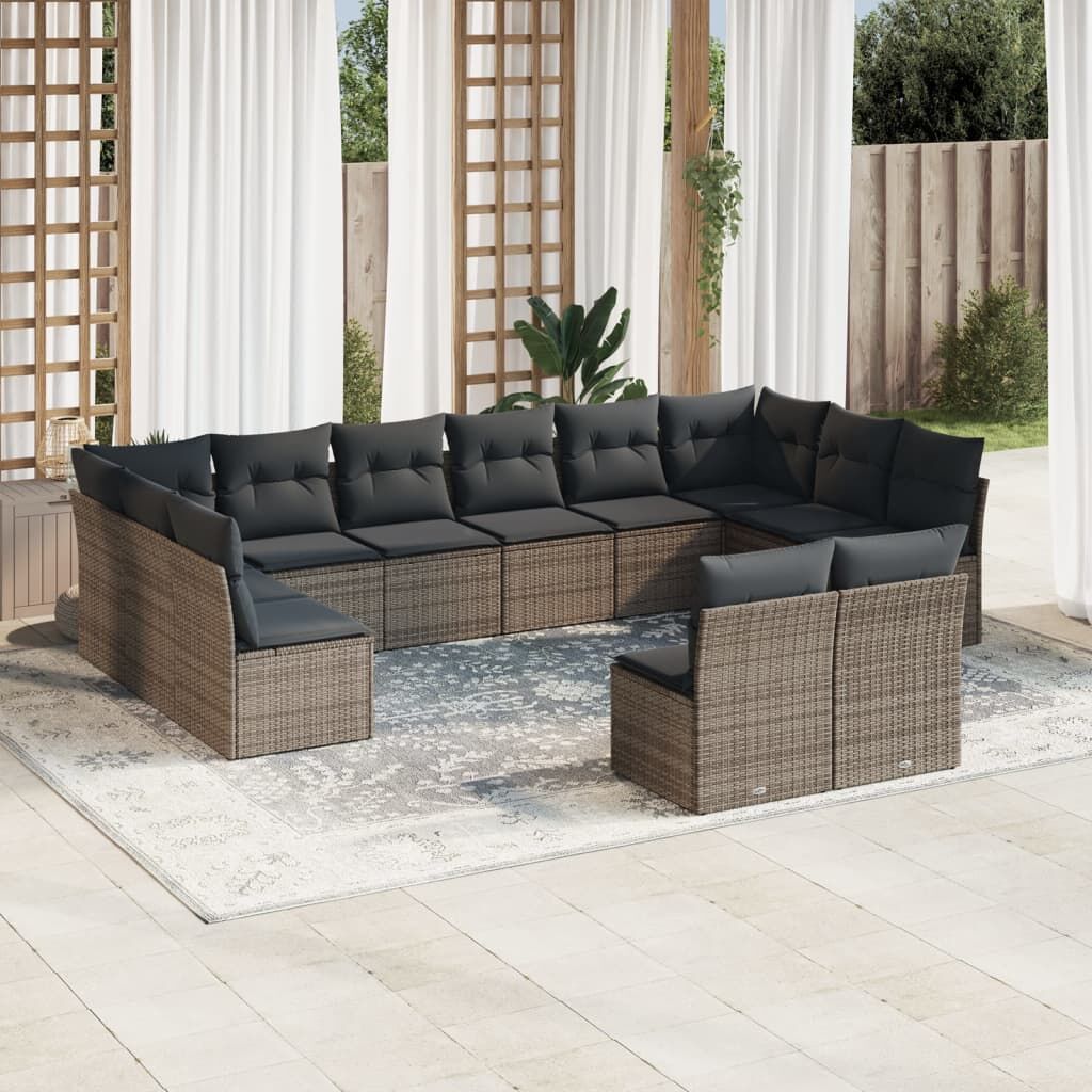 12 Piece Garden Sofa Set with Cushions Grey Poly Rattan