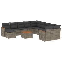 12 Piece Garden Sofa Set with Cushions Grey Poly Rattan