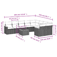 10 Piece Garden Sofa Set with Cushions Mix Beige Poly Rattan