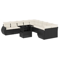 11 Piece Garden Sofa Set with Cushions Black Poly Rattan