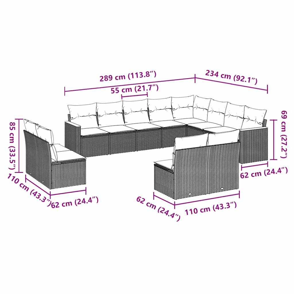 12 Piece Garden Sofa Set with Cushions Black Poly Rattan
