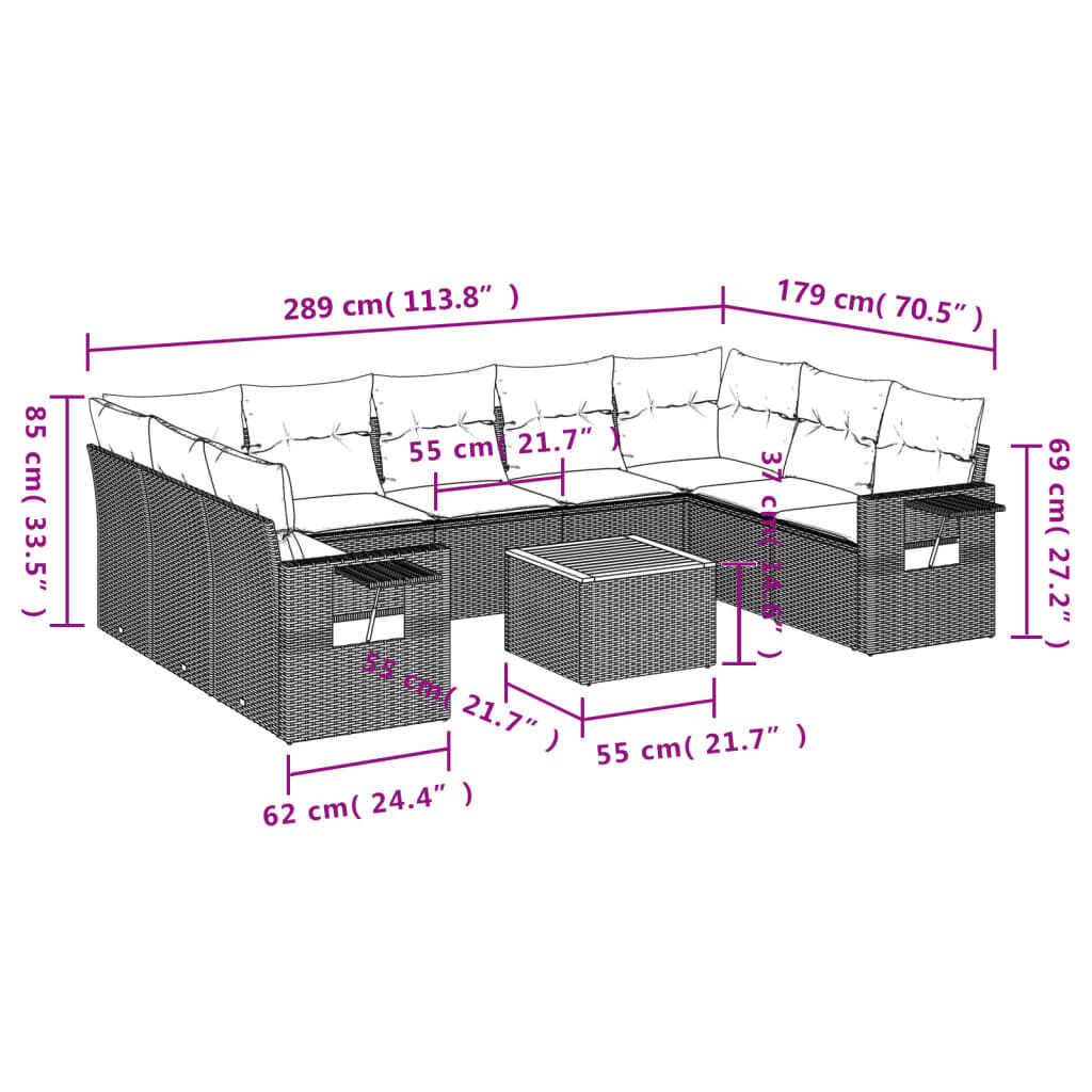 10 Piece Garden Sofa Set with Cushions Grey Poly Rattan