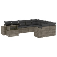 10 Piece Garden Sofa Set with Cushions Grey Poly Rattan