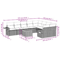 10 Piece Garden Sofa Set with Cushions Grey Poly Rattan