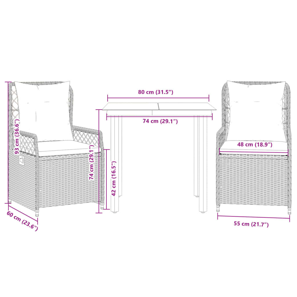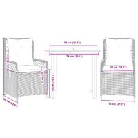 3 Piece Garden Dining Set with Cushions Grey Poly Rattan