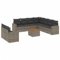 10 Piece Garden Sofa Set with Cushions Grey Poly Rattan