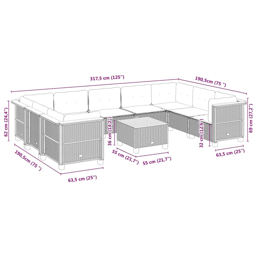 10 Piece Garden Sofa Set with Cushions Beige Poly Rattan