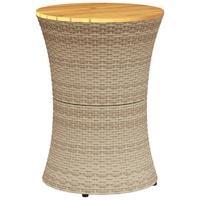 Garden Side Table Drum Shape Beige Poly Rattan and Solid Wood