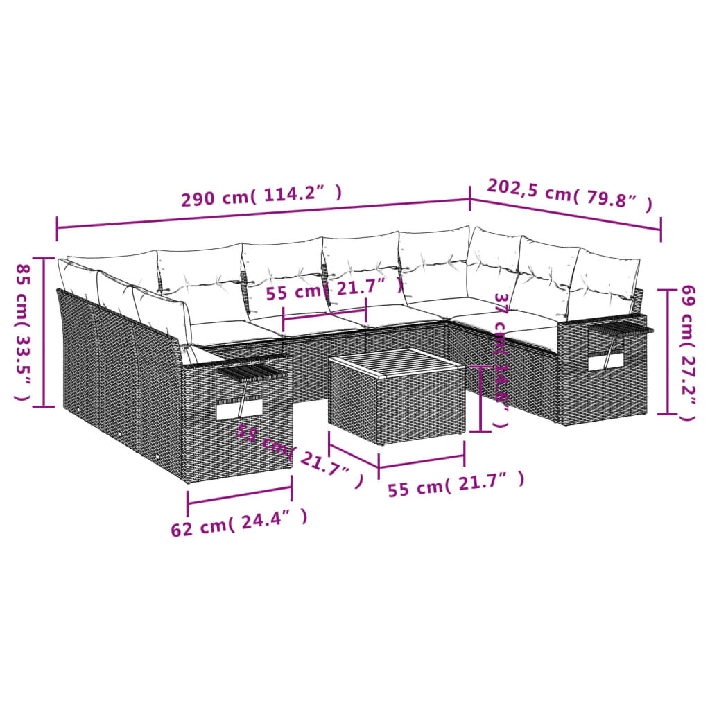 10 Piece Garden Sofa Set with Cushions Grey Poly Rattan