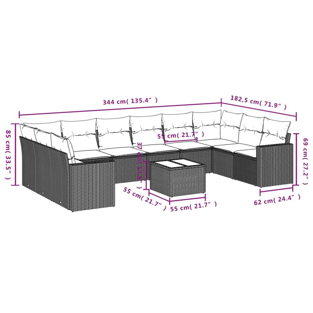 11 Piece Garden Sofa Set with Cushions Black Poly Rattan
