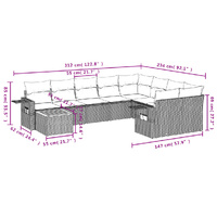 10 Piece Garden Sofa Set with Cushions Grey Poly Rattan